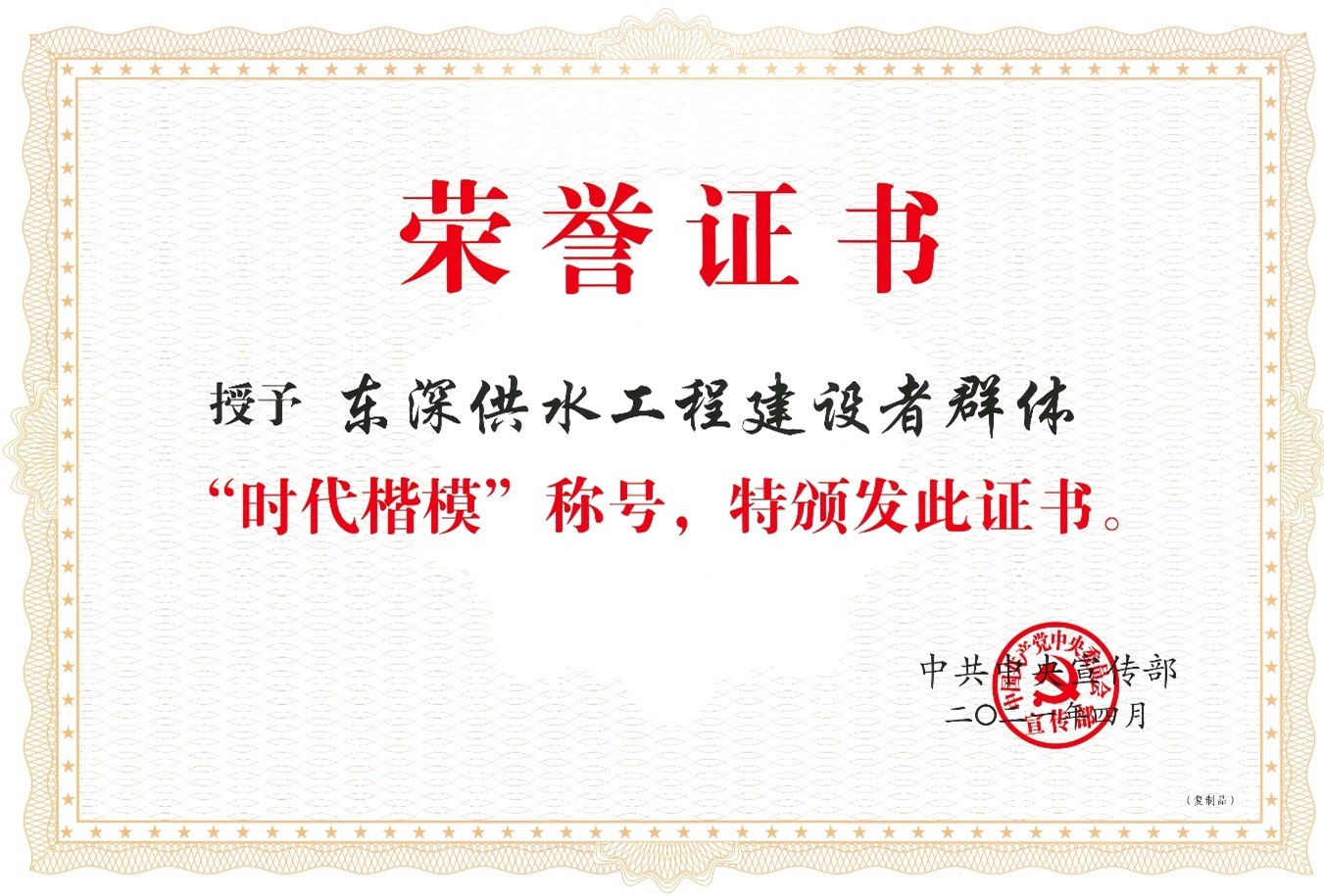 2021年4月,中共中央宣傳部授予東深供水工程建設(shè)者群體“時(shí)代楷?!狈Q號(hào),褒揚(yáng)他們是“建設(shè)守護(hù)香港供水生命的光榮團(tuán)隊(duì)”。近日,市水電公司收到“時(shí)代楷?!睒s譽(yù)證書及牌匾,這是屬于全體建設(shè)者的榮譽(yù),也是給予市水電公司的一份無(wú)上榮光。東江—深圳供水工程(簡(jiǎn)稱“東深供水…......
