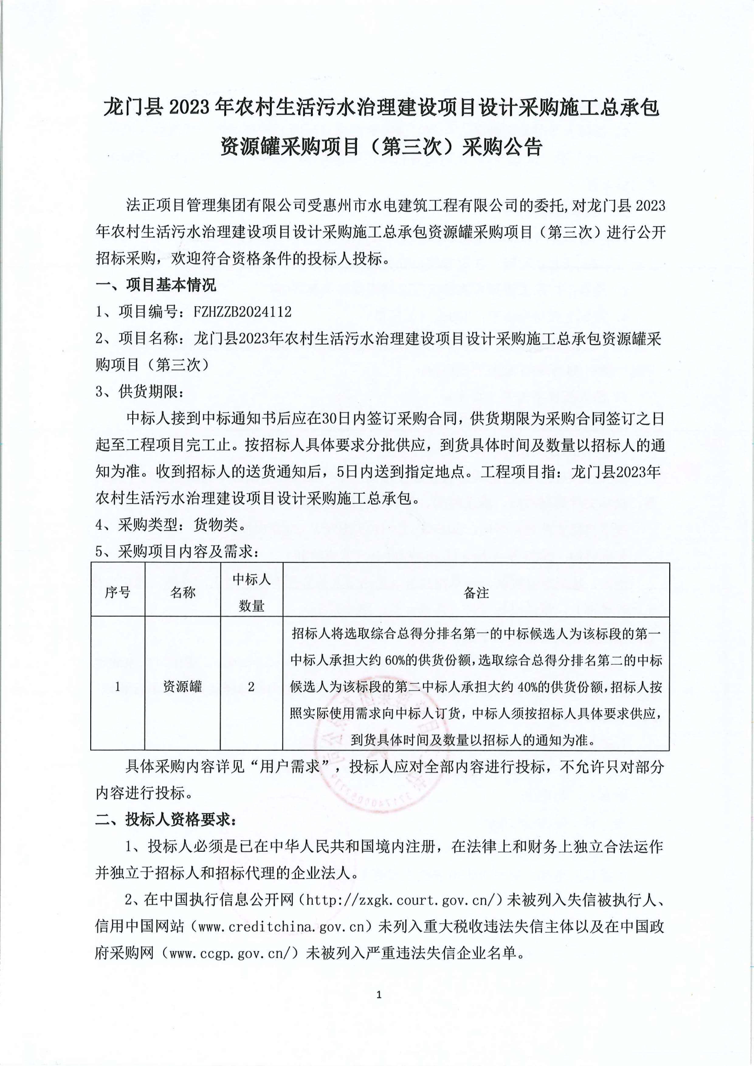 龍門縣2023年農(nóng)村生活污水治理建設(shè)項(xiàng)目設(shè)計(jì)采購(gòu)施工總承包資源罐采購(gòu)項(xiàng)目(第三次)采購(gòu)公告