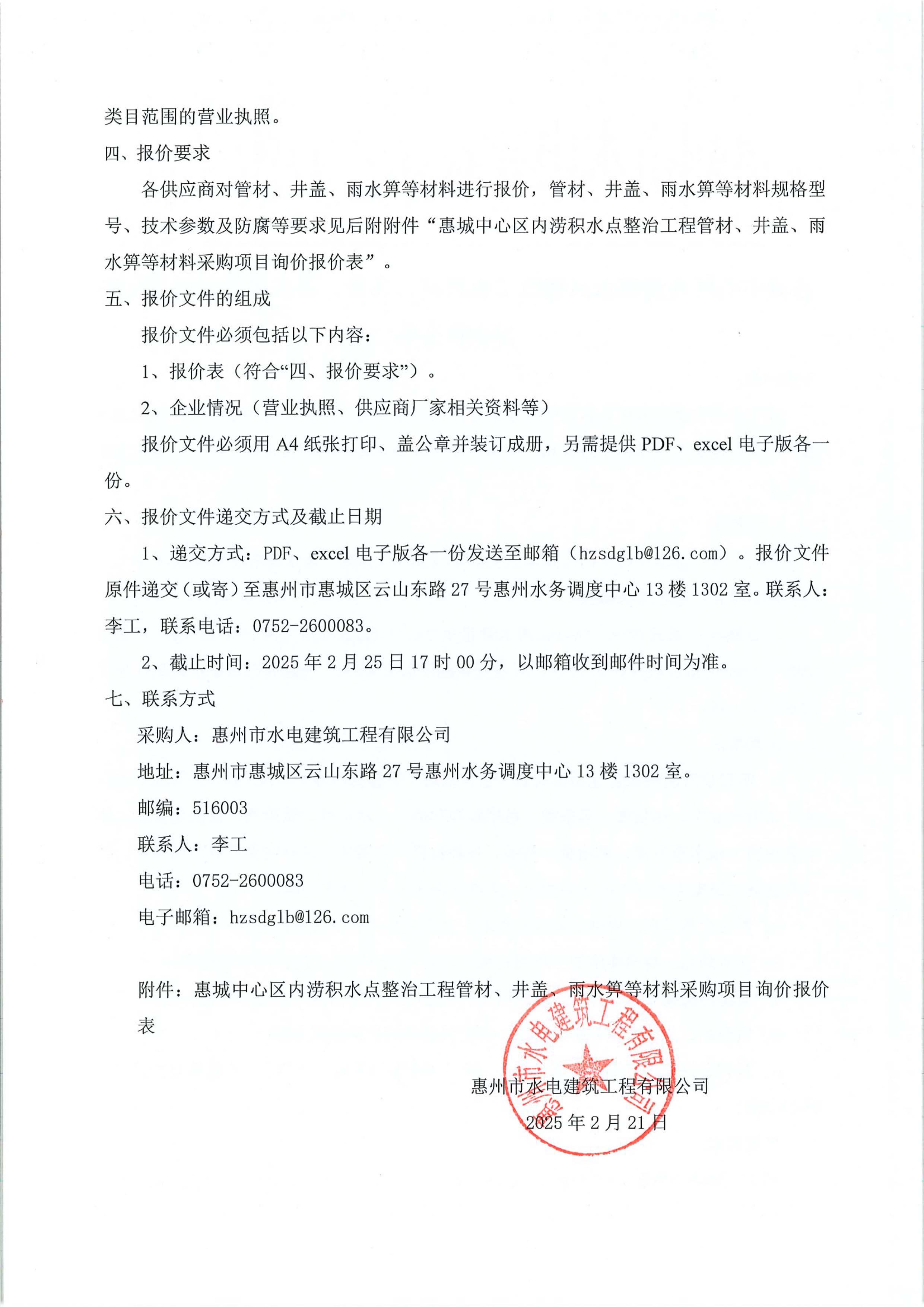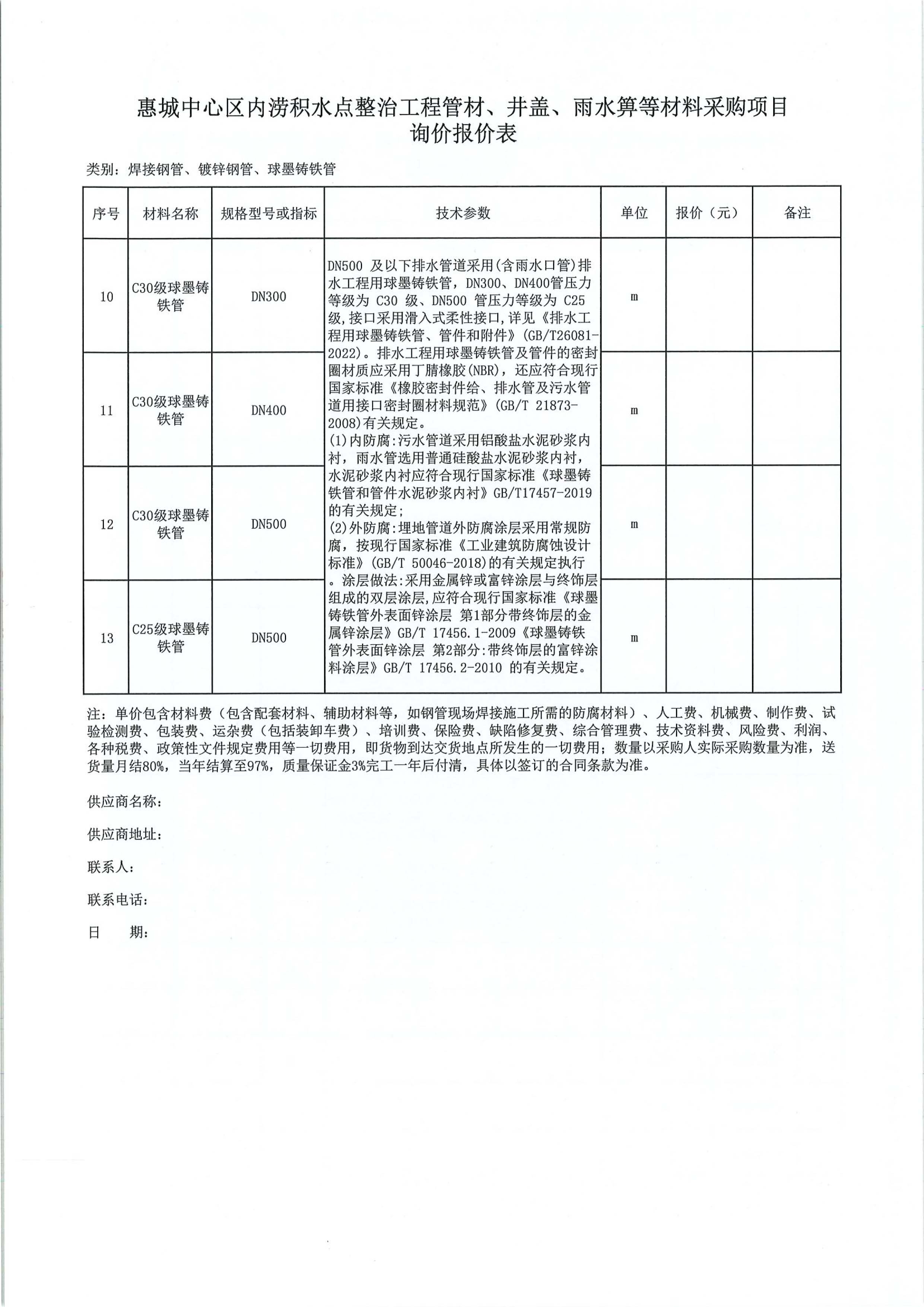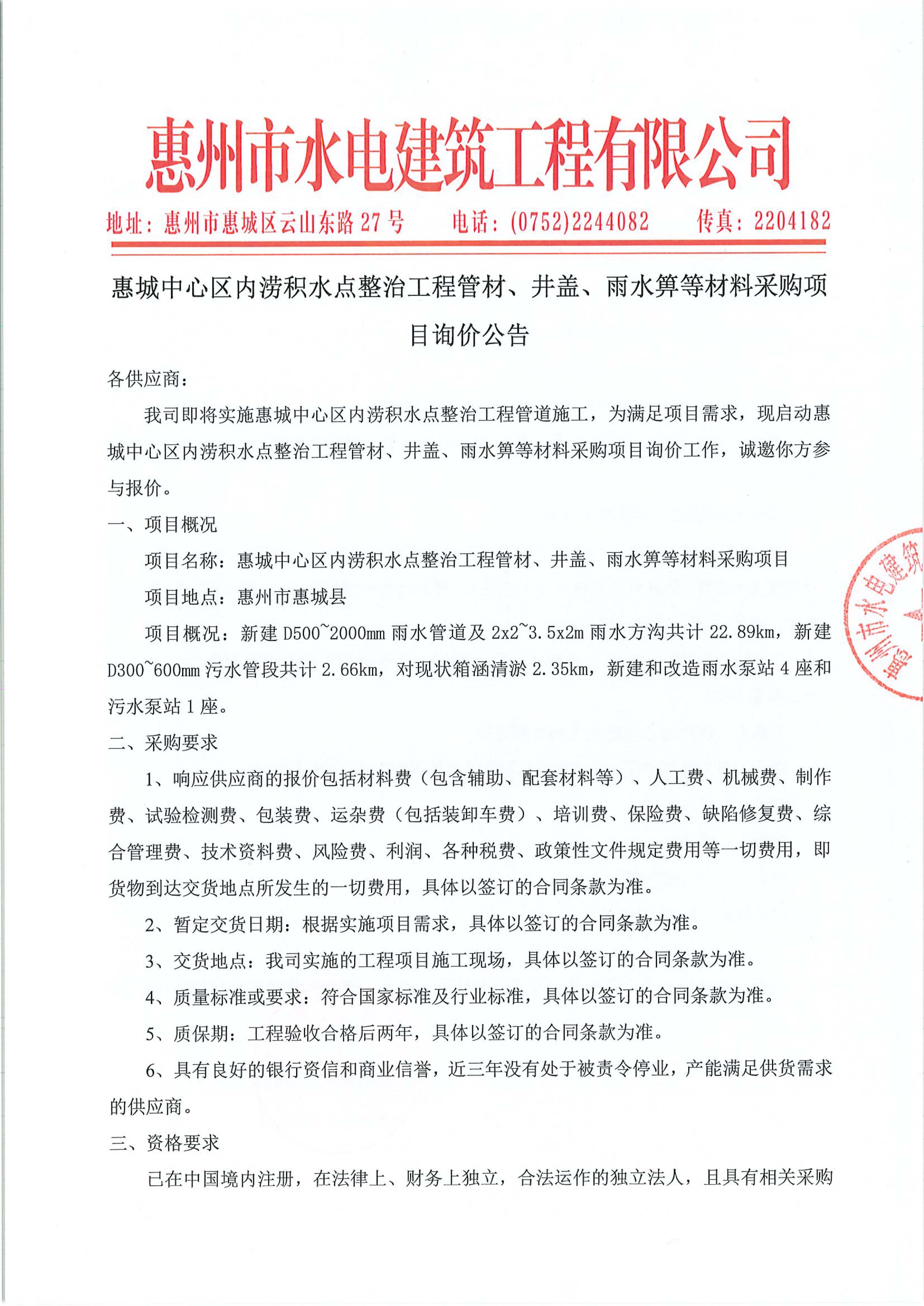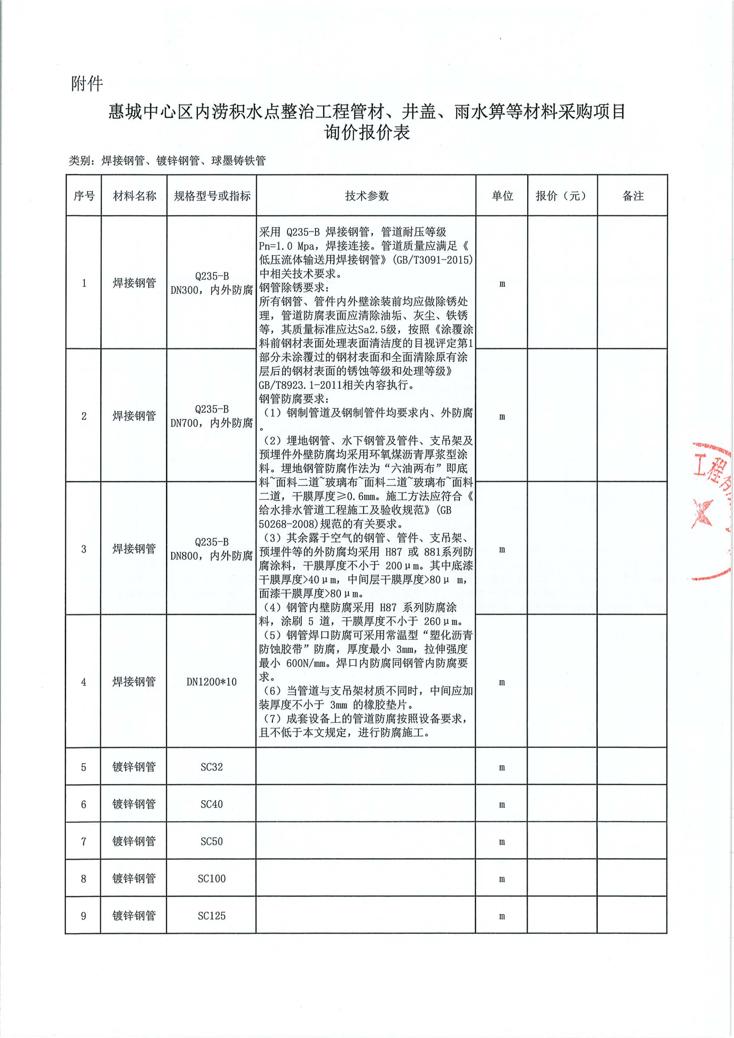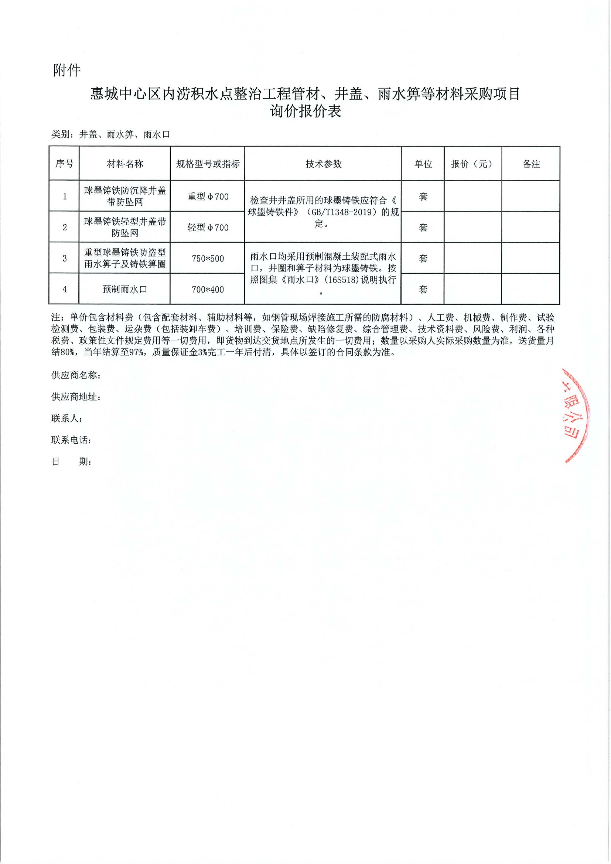 惠城中心區(qū)內(nèi)澇積水點(diǎn)整治工程管材、井蓋、雨水箅等材料采購(gòu)項(xiàng)目詢價(jià)公告附件: