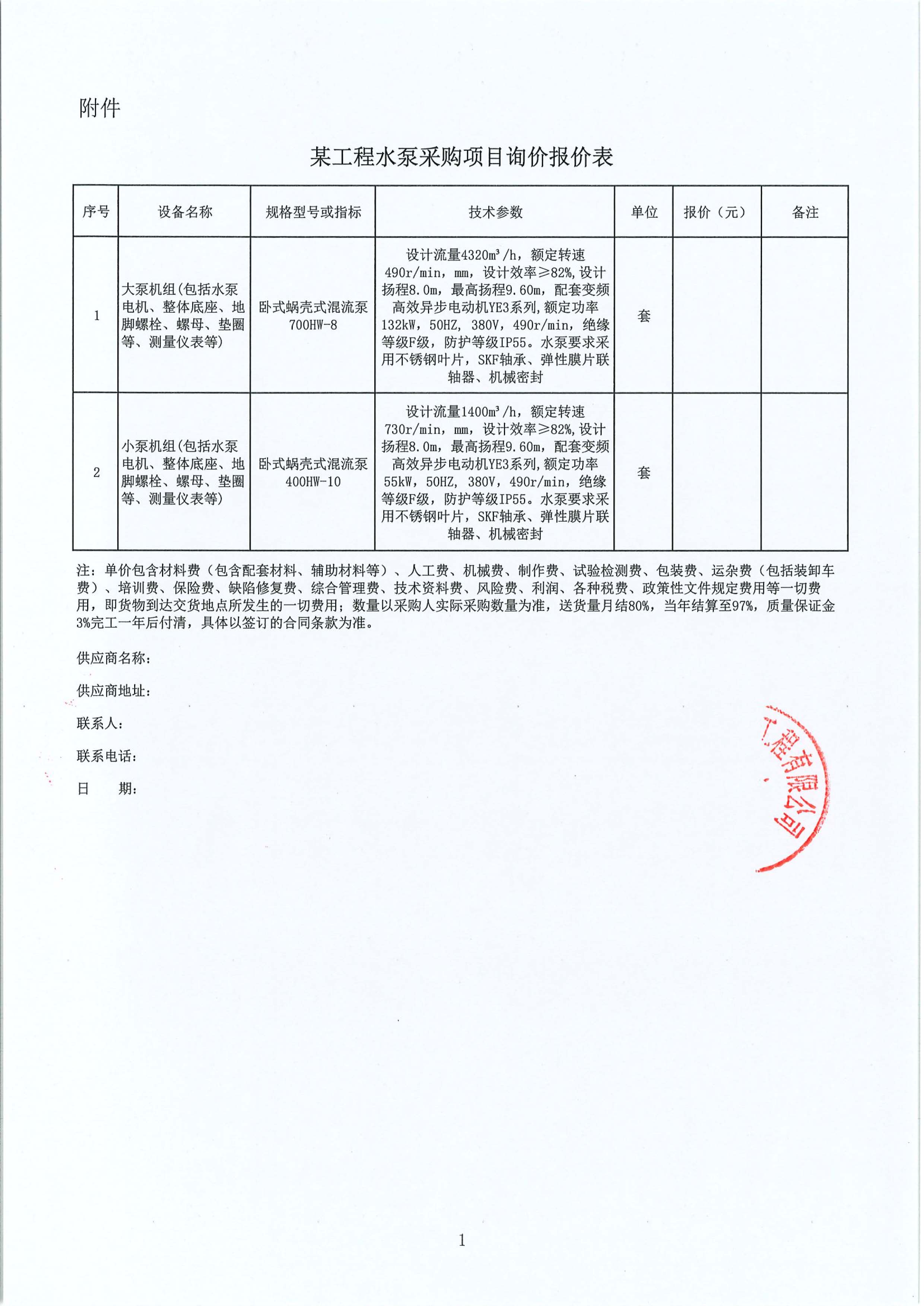 某工程水泵采購(gòu)項(xiàng)目詢價(jià)公告附件: