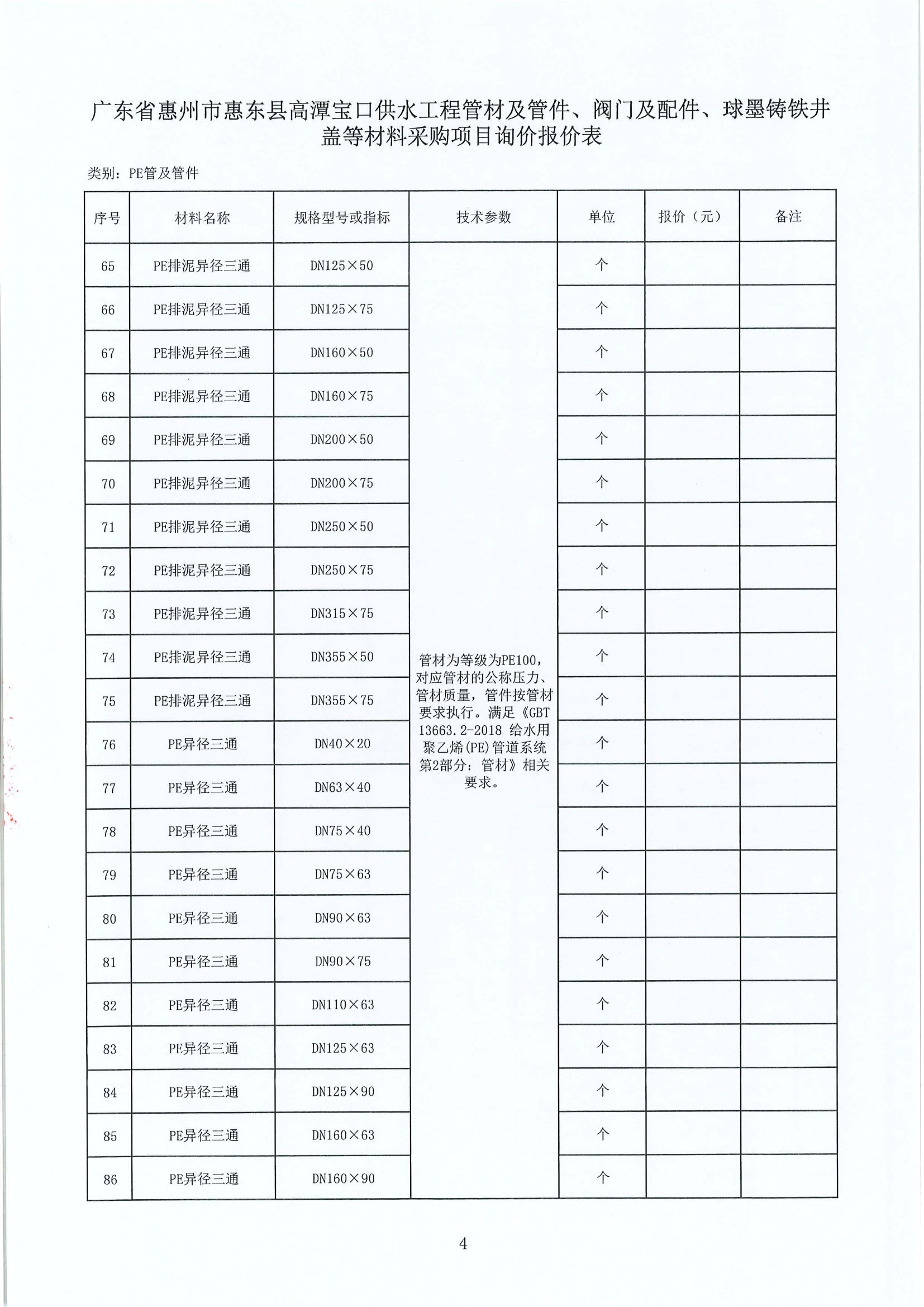 附件:廣東省惠州市惠東縣高潭寶口供水工程施工管材及管件、閥門及配件、球墨鑄鐵井蓋等材料采購項目詢價報價表