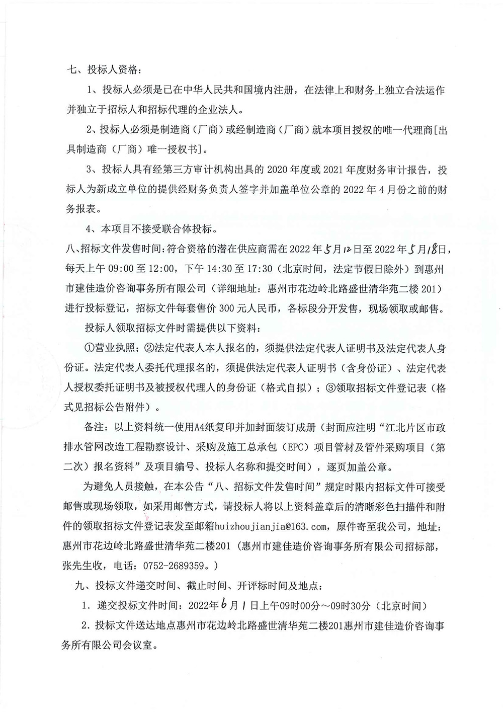 江北片區(qū)市政排水管網(wǎng)改造工程勘察設(shè)計、采購及施工總承包(EPC)項目管材及管件采購項目(第二次)招標(biāo)公告