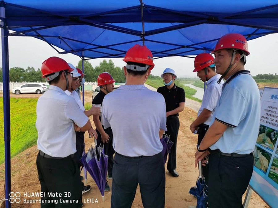 2022年8月3日下午,市水務集團黨委書記、董事長張國偉帶隊來到公司承建的惠州市惠東縣新材料產(chǎn)業(yè)園片區(qū)市政項目、白花河防洪排澇治理工程檢查項目進展情況,市水務集團副總經(jīng)理吳勝華、總工程師陳璐,董事會辦公室、行政部、建設部負責人參加調(diào)研,公司黨委書記、董事長鄭海強,黨委副書記、總經(jīng)理黃敏及項目負責人陪同。