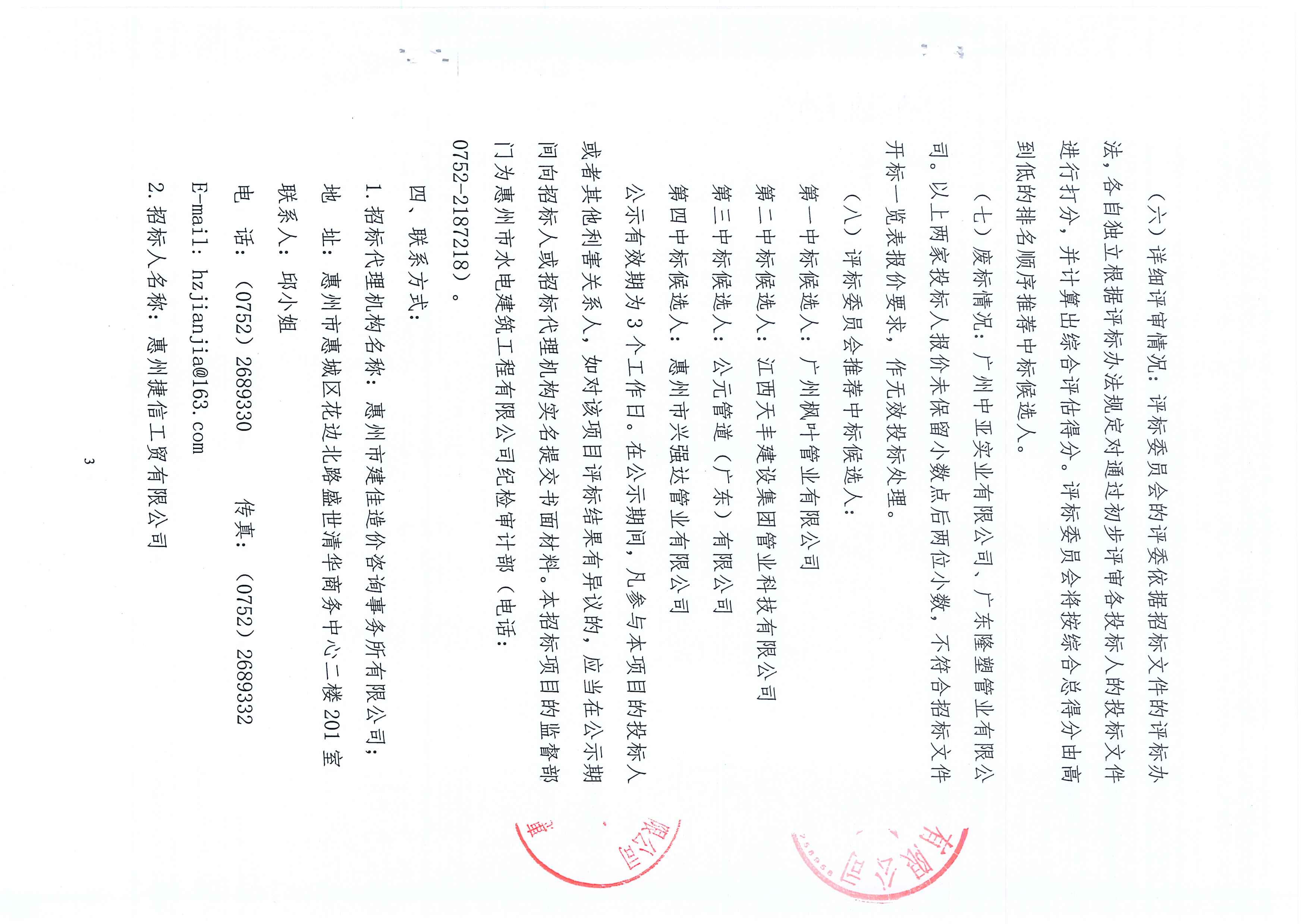 捷信工貿(mào)公司2023年度第一批管材及管件采購項目(標段一)(第二次)評標結(jié)果公示