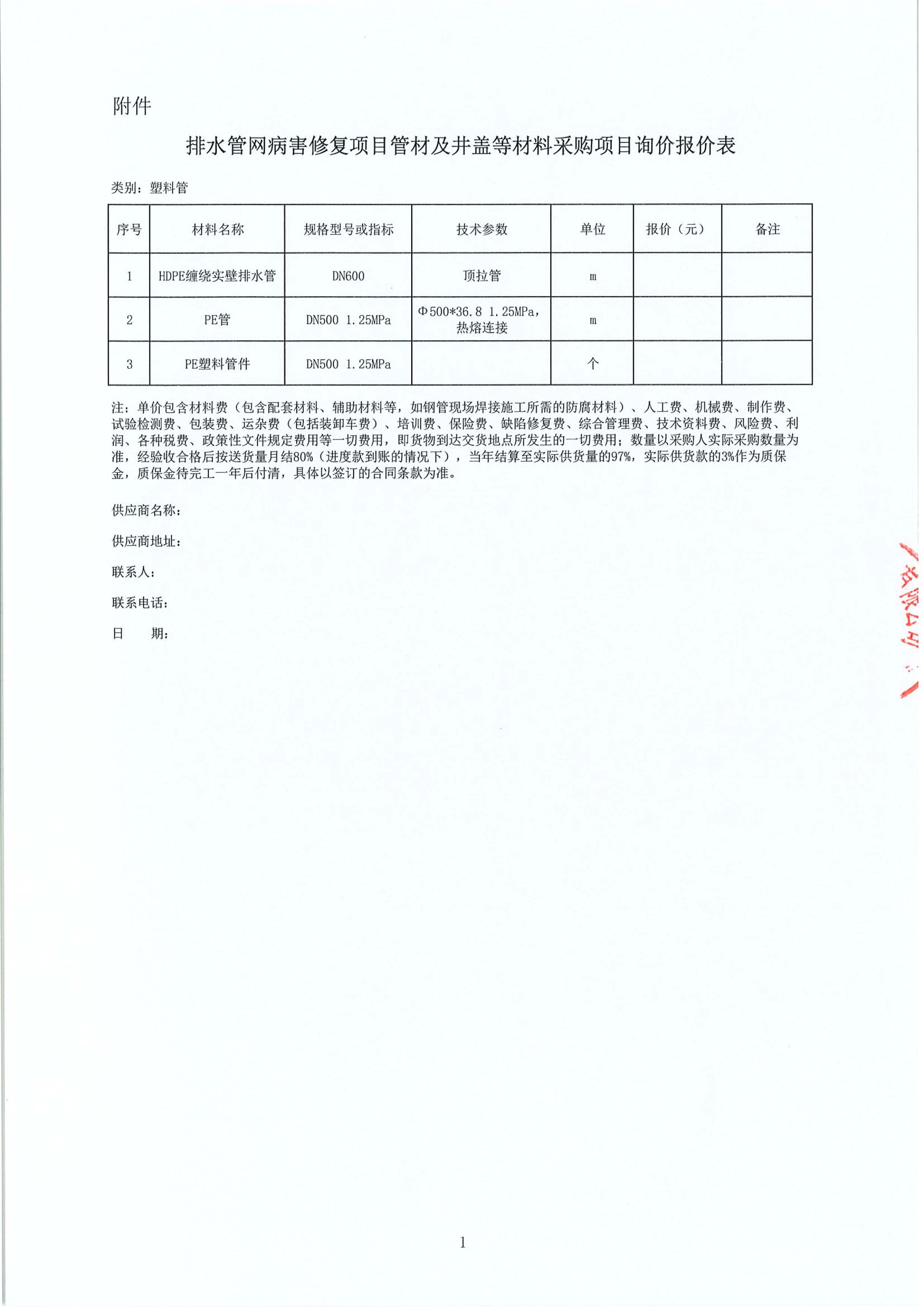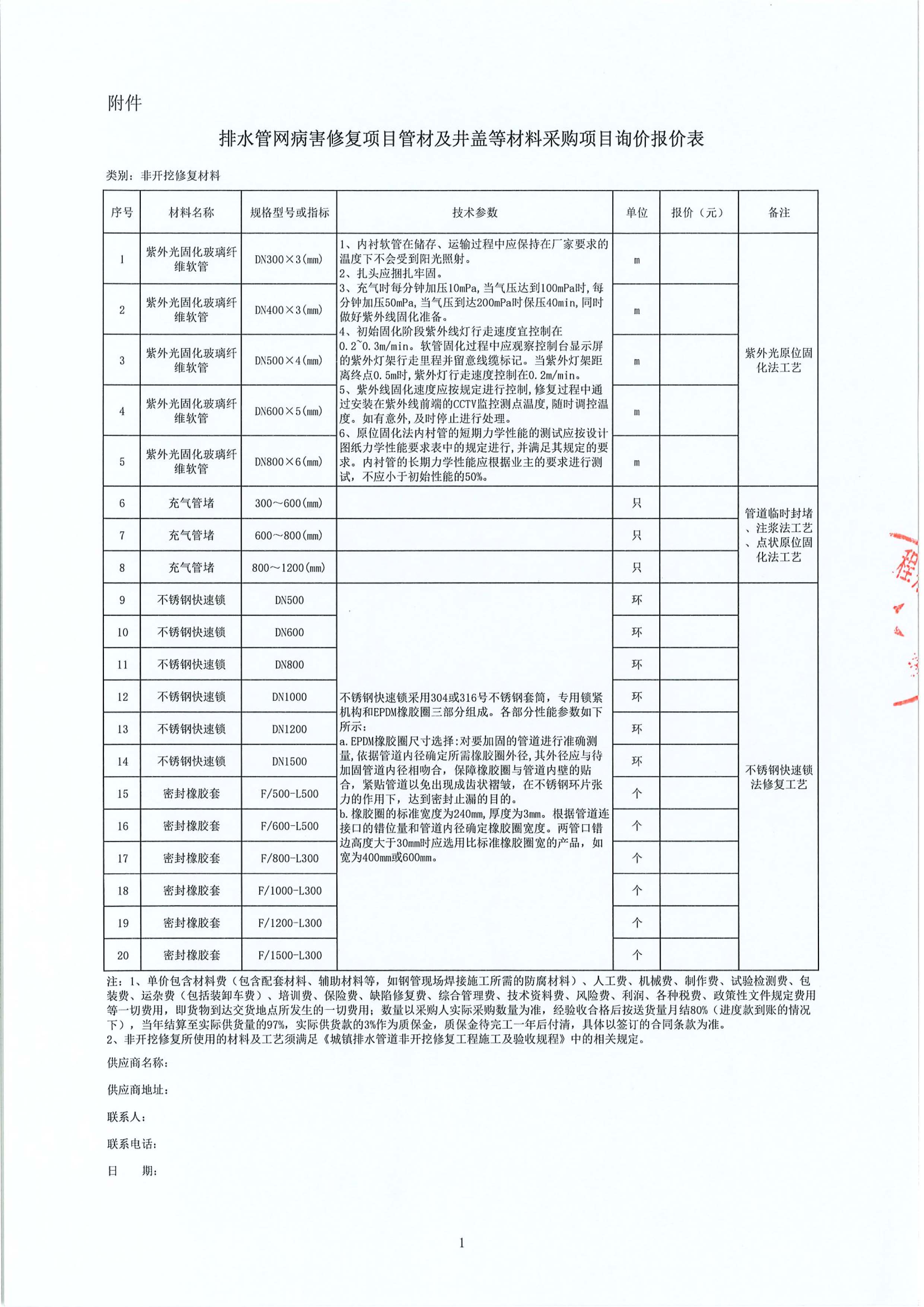 排水管網(wǎng)病害修復(fù)項(xiàng)目管材及井蓋等材料采購(gòu)項(xiàng)目詢價(jià)公告附件: