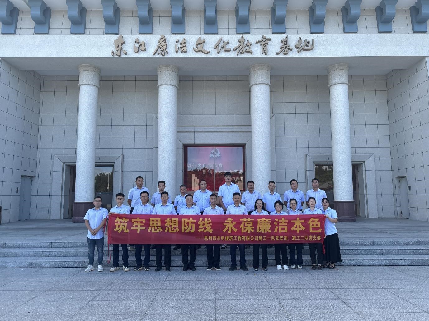 為扎實推進黨風(fēng)廉政建設(shè),增強黨員干部廉潔自律意識,6月11日,施工一隊、施工二隊黨支部組織黨員赴博羅東江廉潔文化教育基地開展“筑牢思想防線 永葆廉潔本色”主題黨日活動,通過沉浸式廉潔教育,進一步筑牢黨員拒腐防變思想防線。