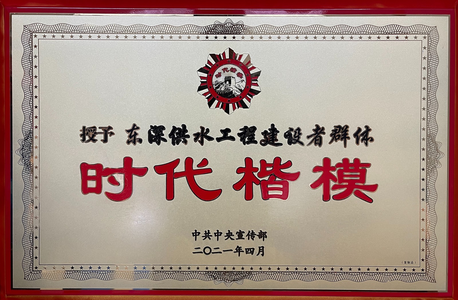 “時代楷?!睒s譽稱號——東深供水工程建設(shè)者群體