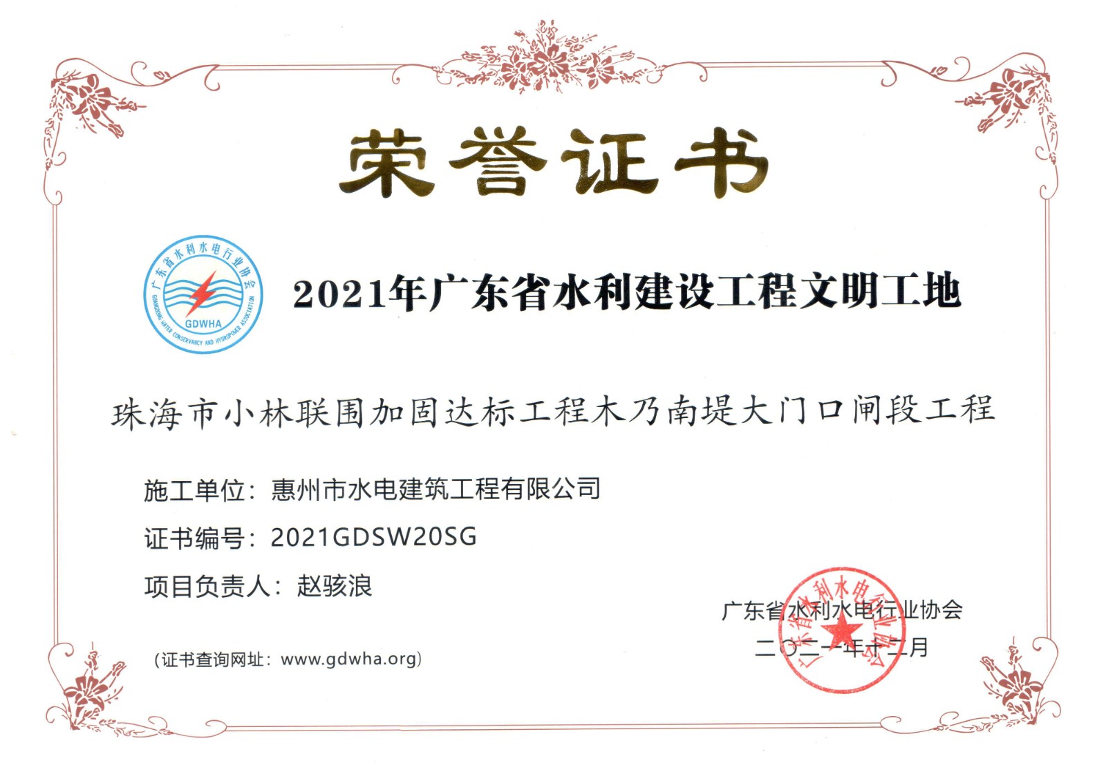 廣東省水利建設(shè)工程文明工地——珠海市小林聯(lián)圍加固達標工程木乃南堤大門口閘段工程