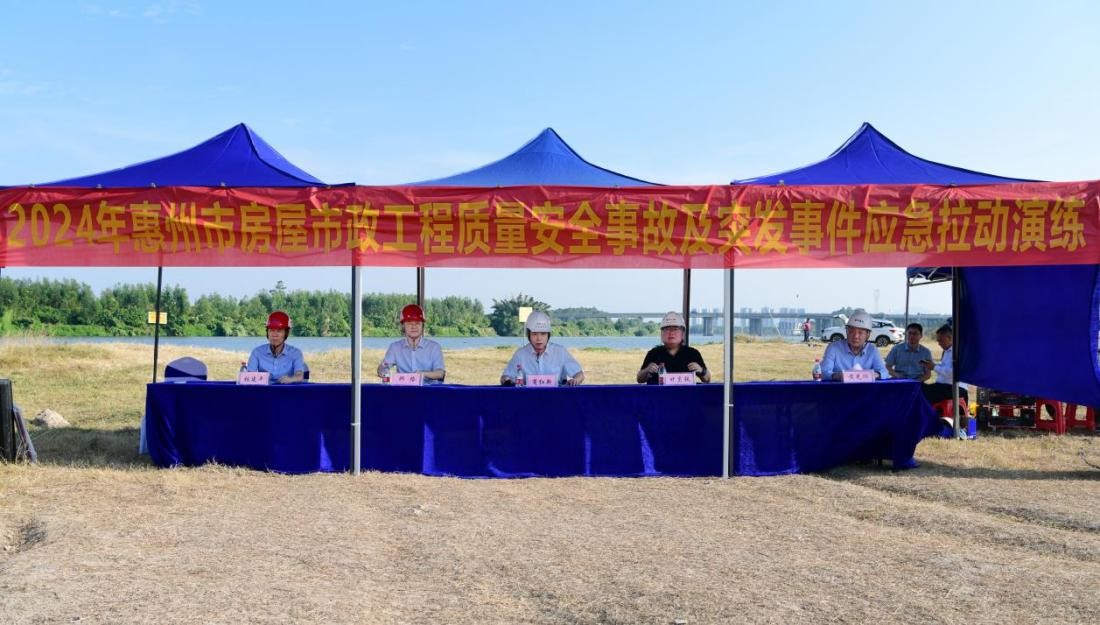 為積極響應(yīng)市住建局對(duì)應(yīng)急拉動(dòng)演練的工作要求和指示,強(qiáng)化惠州市房屋市政工程應(yīng)急拉動(dòng)力量建設(shè),11月12日,由惠州市住建局主辦、惠州市建筑業(yè)協(xié)會(huì)與我司共同承辦的2024年惠州市房屋市政工程質(zhì)量安全事故及突發(fā)事件應(yīng)急拉動(dòng)演練在惠城區(qū)三棟鎮(zhèn)舉行。